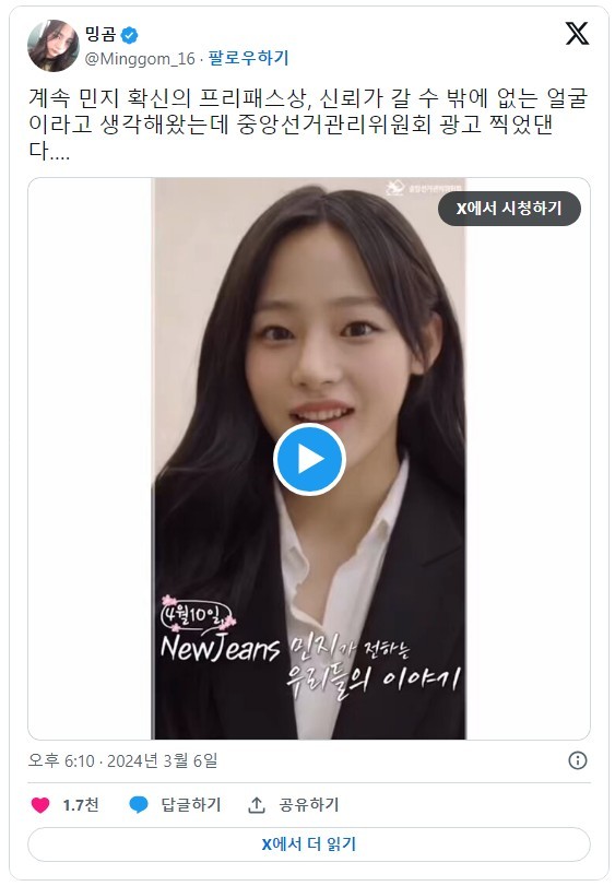 신기하게 투표 완료 인증한 뉴진스 민지