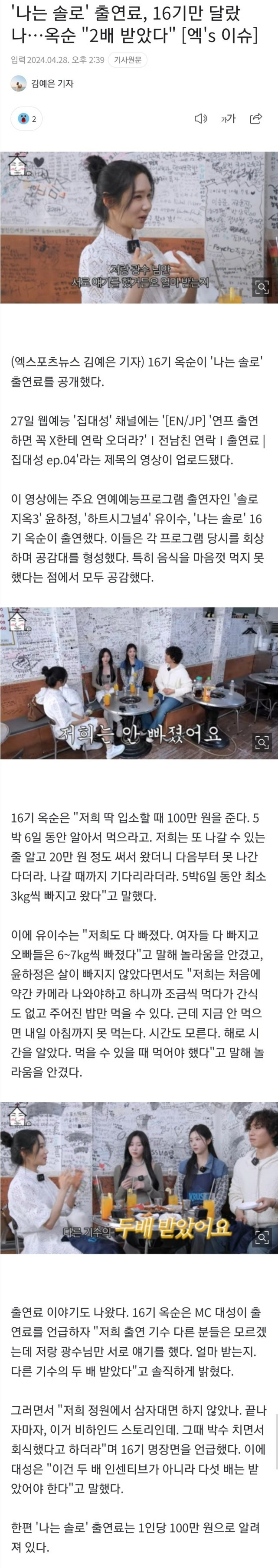 16기 옥순이 공개한 나는솔로 출연료