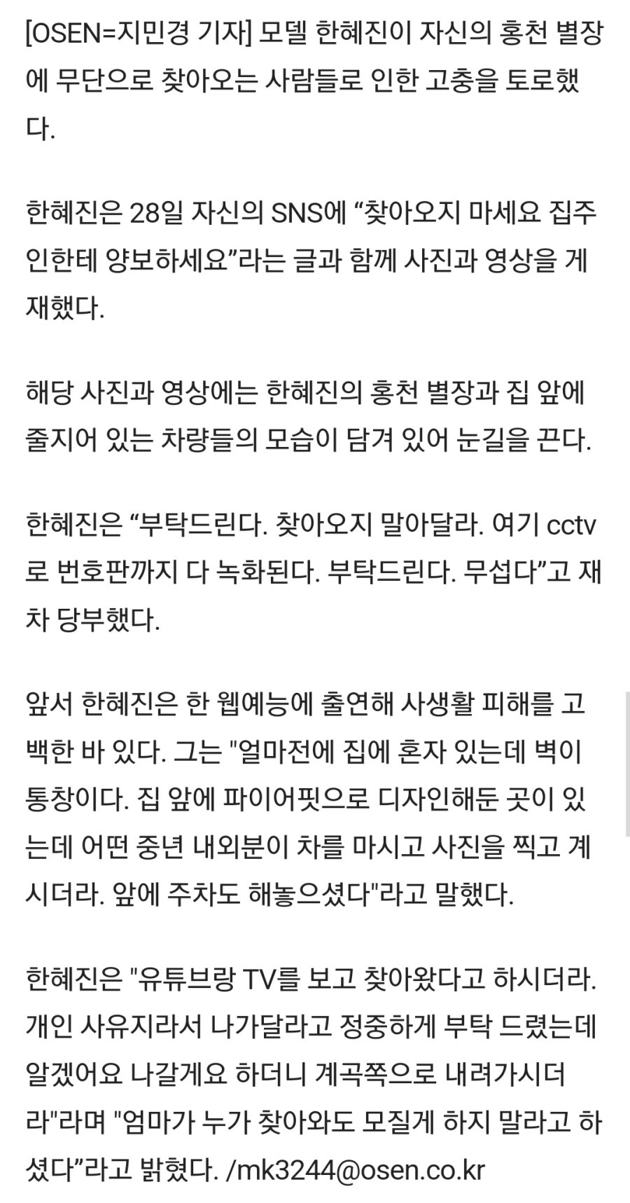 - 02.03 모델 한혜진이 주변인들에게 절대 하지 않는 말
